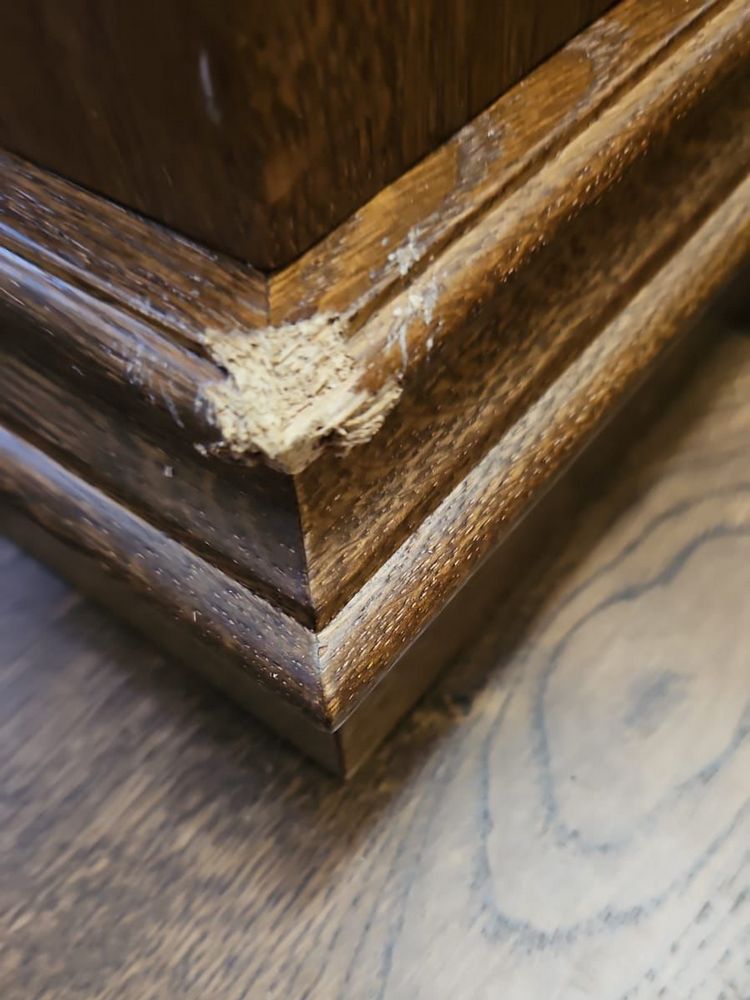 Мастера компании «Вернисаж» выполнили реставрацию повреждений деревянных предметов интерьера на объекте в Москве. Хозяйские собачки чихуахуа повредили деревянные поверхности. Повреждения устранили с помощью шпатлевок-расплавов и безореольных лаков.