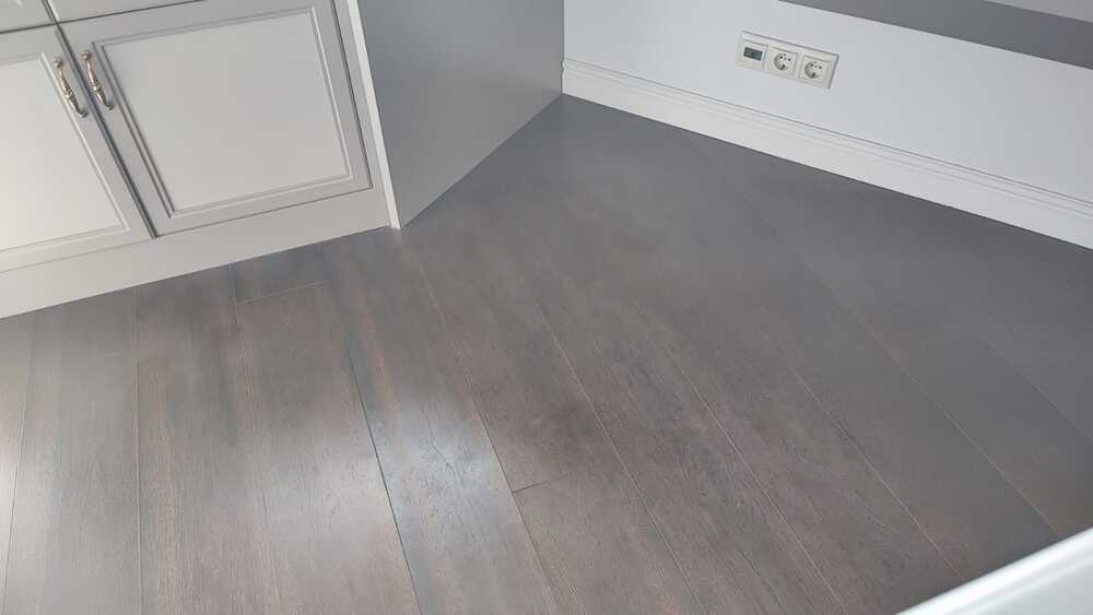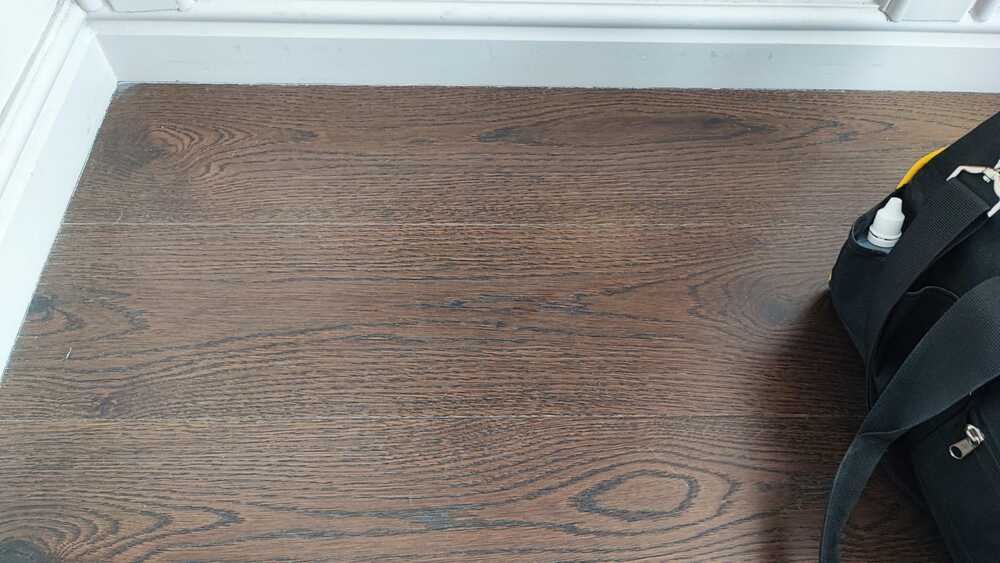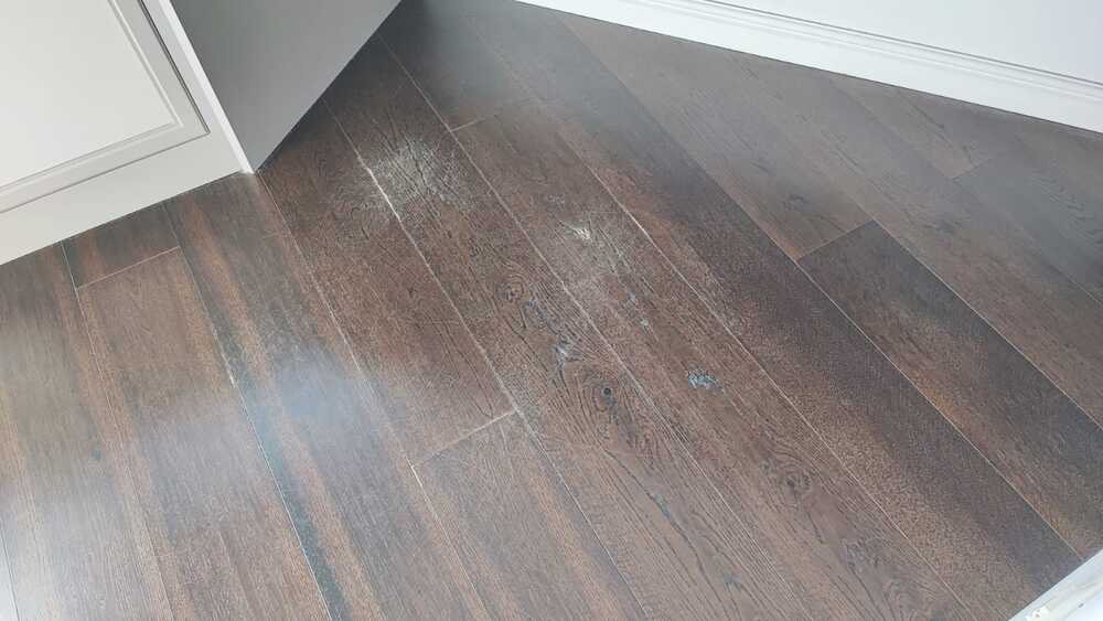 Мастера компании «Вернисаж» выполнили реставрацию паркета на объекте в Москве. На паркете появились повреждения от грифа упавшей гантели.