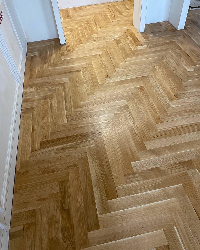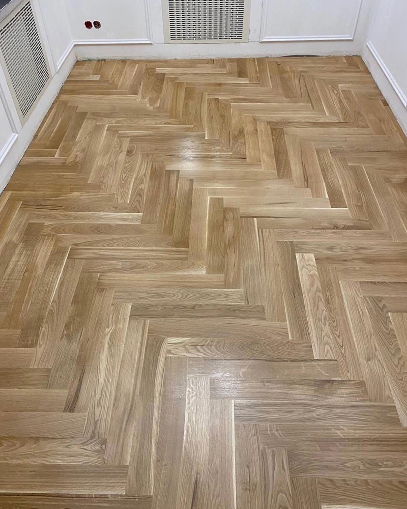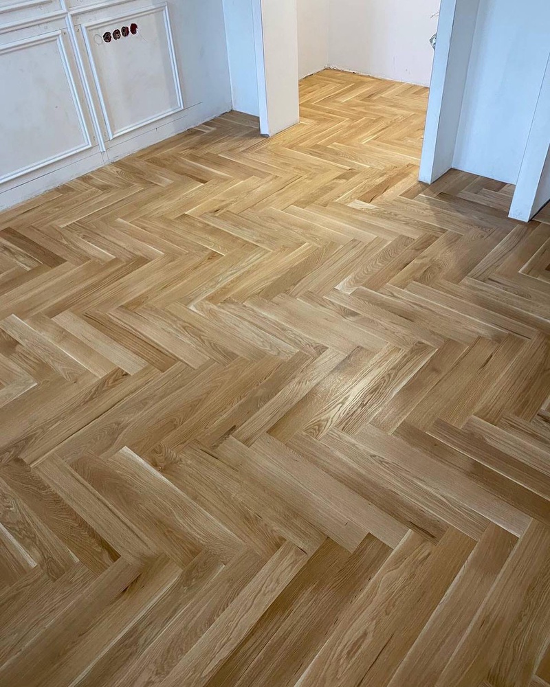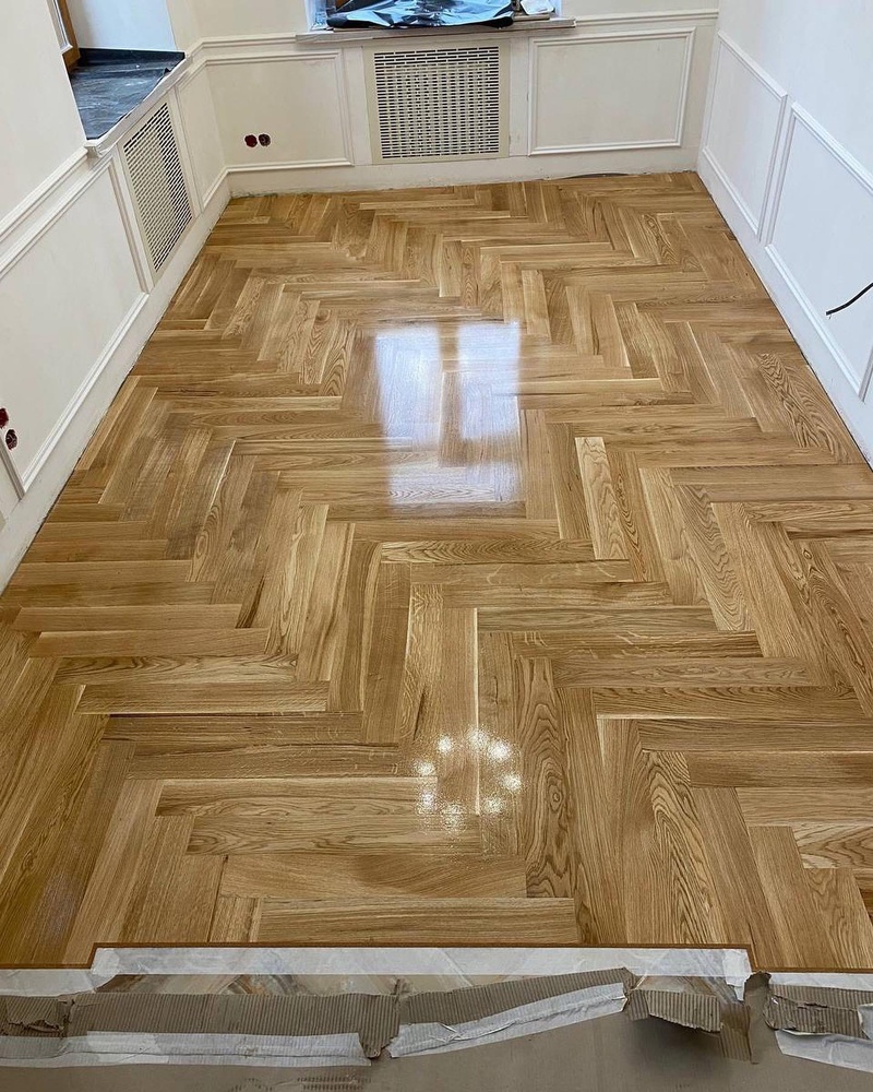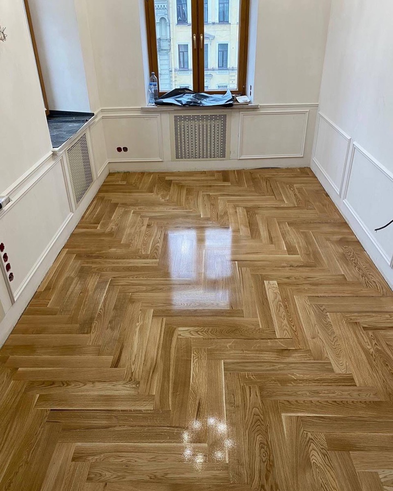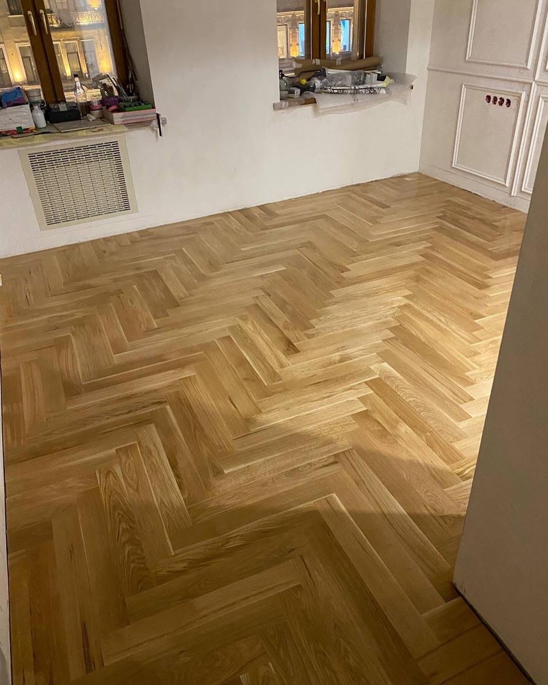 - Укладка штучного паркета дуб натур 600х90х15 мм на стяжку (ЁРШ)