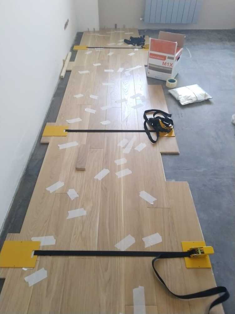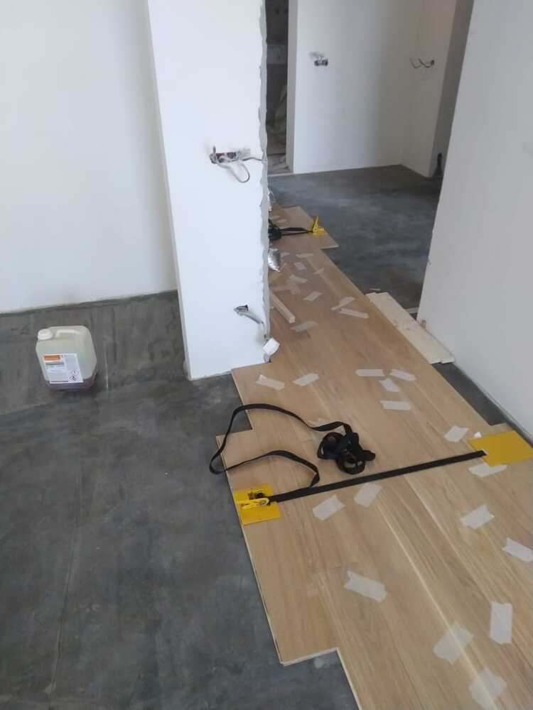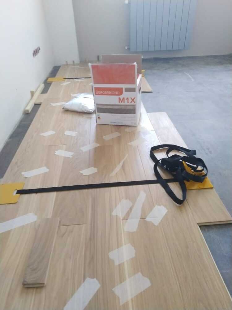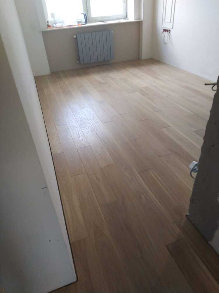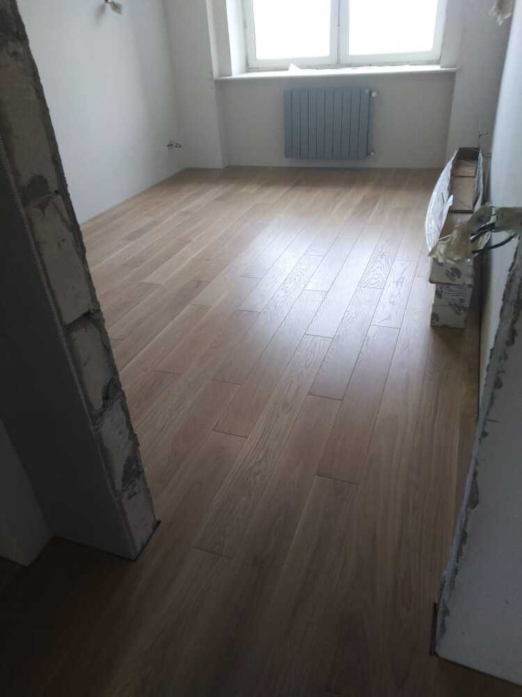 Мастера компании «Вернисаж» выполнили работы по укладке инженерной доски на объекте в Москве. На данном объекте при оценке гипсового основания выяснилось, что оно в плохом состоянии и не подходит для укладки паркета. Силами заказчика данное основание было демонтировано, затем наши мастера залили нормальное основание.