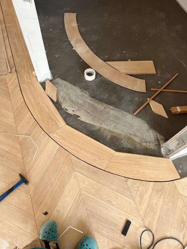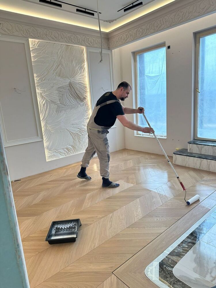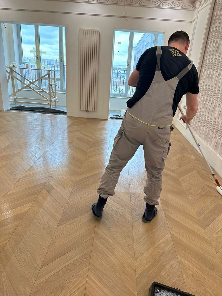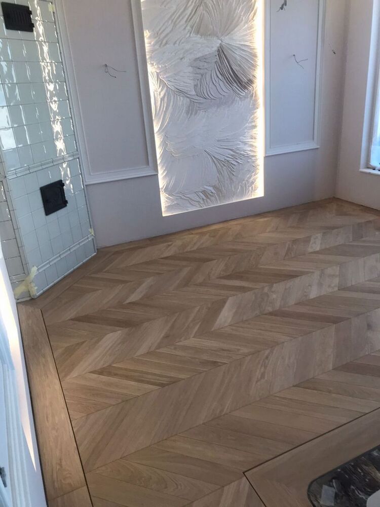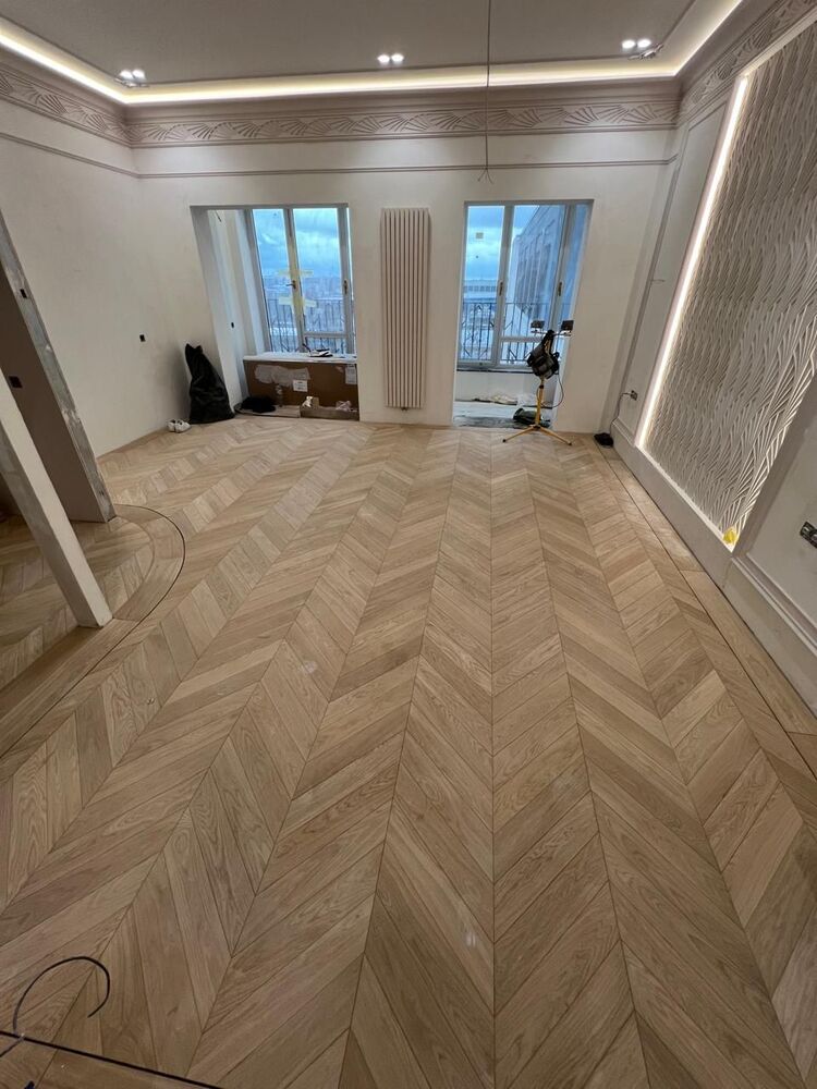 Мастера компании «Вернисаж» выполнили укладку инженерной доски на объекте в Санкт-Петербурге. Использована инженерная конструкция французской елки из дуба сортировки премиум. Вся паркетная химия Berger-Seidle.