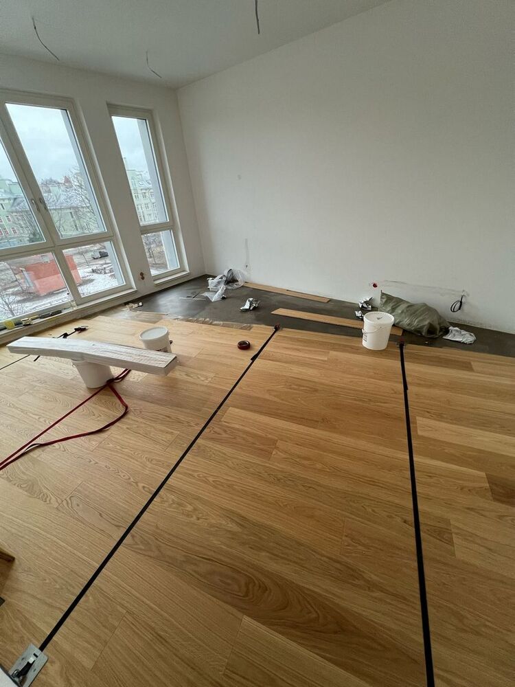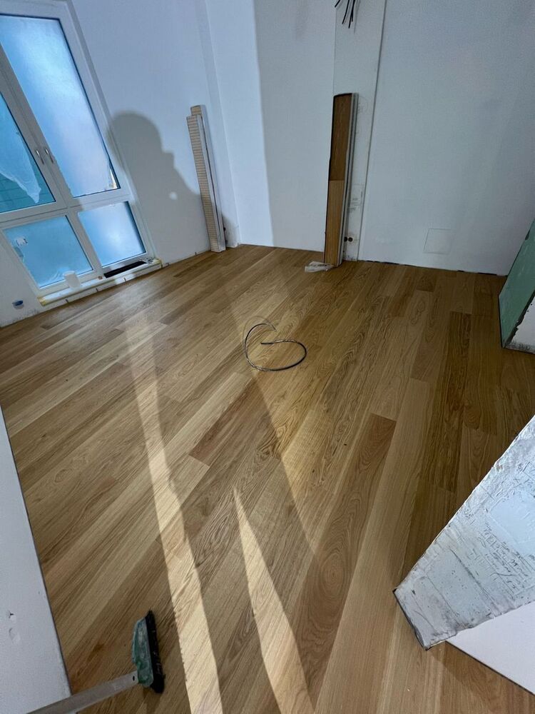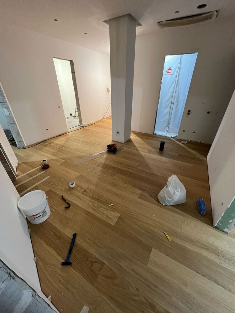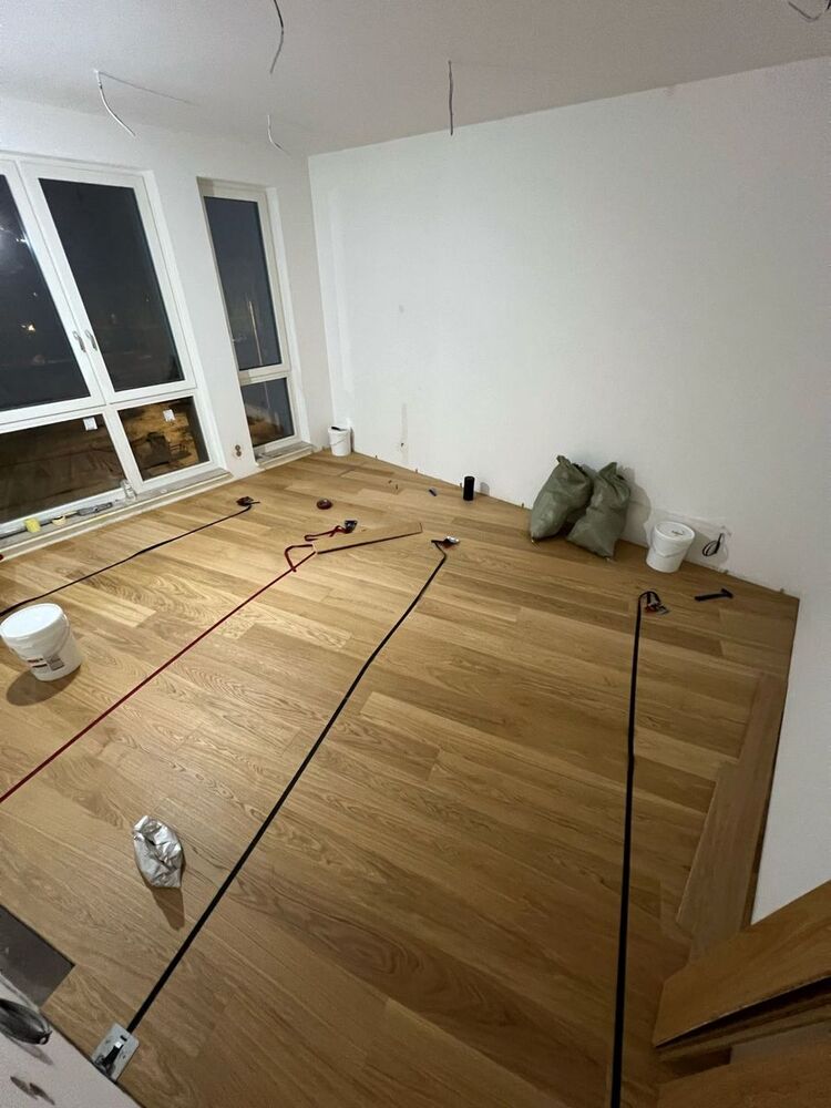 Мастера компании «Вернисаж» выполнили укладку инженерной доски в квартире на Морской набережной в Санкт-Петербурге.
