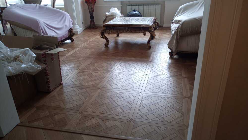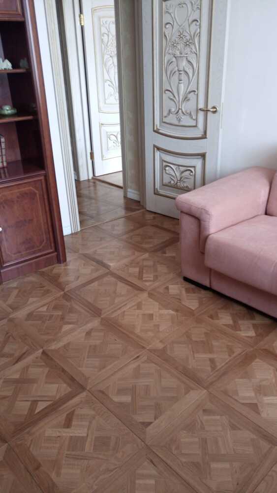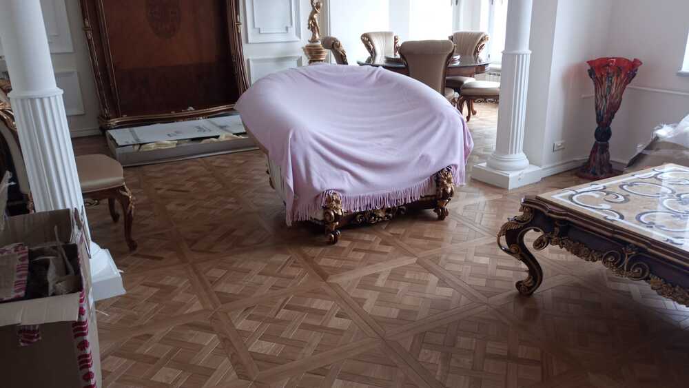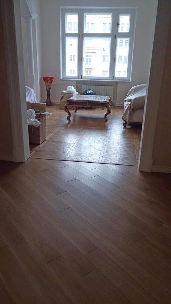 Мастера компании «Вернисаж» выполнили укладку инженерного паркета (модули и палубная укладка) на старое основание в квартире на Тверской улице в Москве.