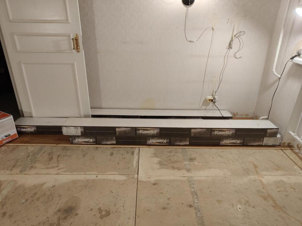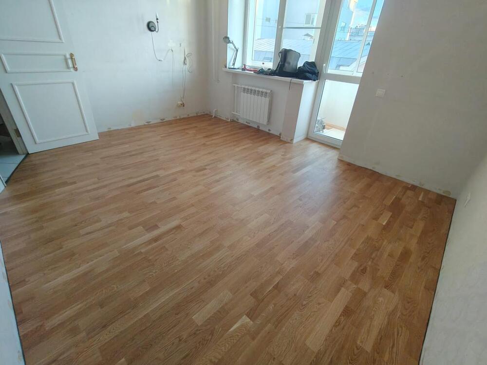 Мастера компании «Вернисаж» выполнили укладку паркетной доски Karelia на объекте в Большом Сергиевском переулке в Москве. В данном помещении ранее был уложен ковролин, владельцы решили заменить его на паркет. Укладку паркетной доски выполнили на старую фанеру, предварительно ее отшлифовав.