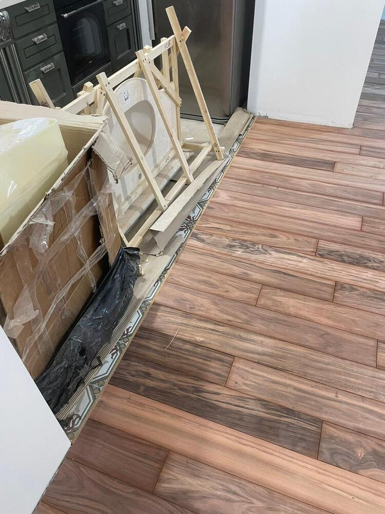 - подгонка паркета по высоте к прилегающей плитке