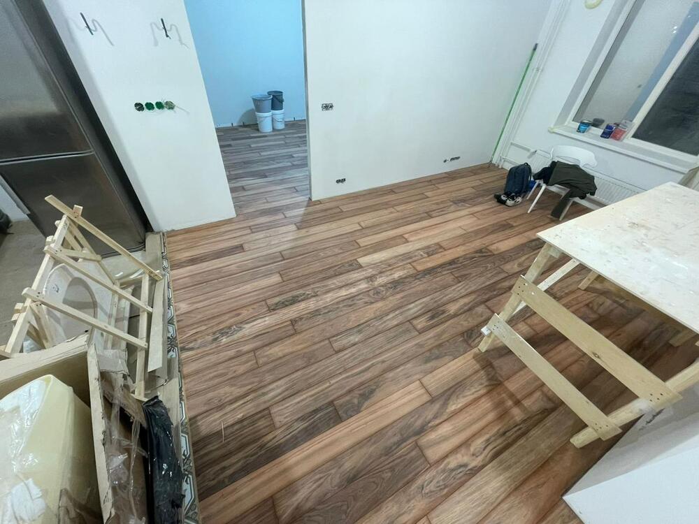 Мастера компании «Вернисаж» выполнили укладку паркетной доски из курупау в квартире на ул. Фермское шоссе в Санкт-Петербурге.