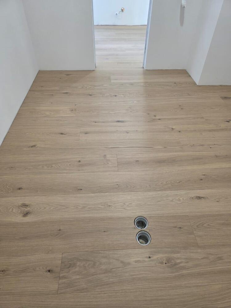 Для укладки выбрана доска австрийского бренда Weitzer Parquet. В обеденной зоне сделали врезку модульного паркета с рисунком «версаль» – модуль произвели в нашей мастерской, покрытие подобрали точно под цвет основной доски.