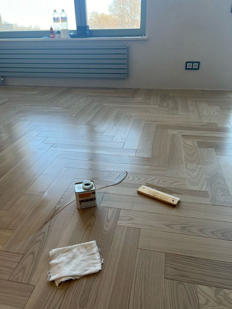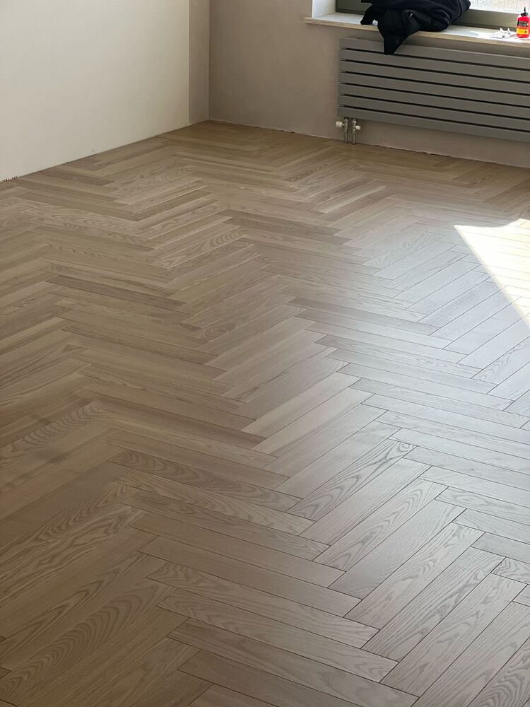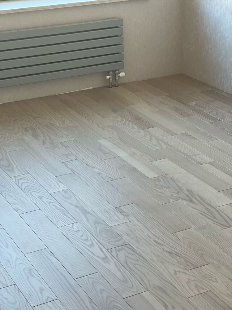 Мастера компании «Вернисаж» выполнили укладку паркетной доски рисунком английская елка в квартире на Приморском проспекте в Санкт-Петербурге. Для укладки использовался паркет из ясеня с заводским покрытием.