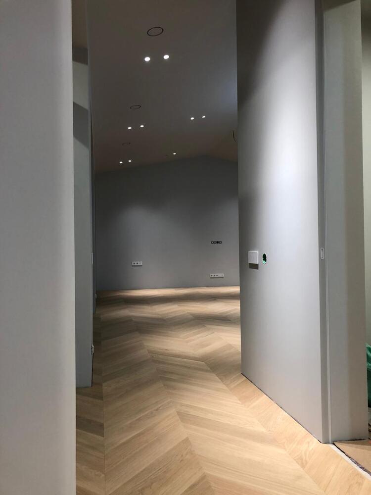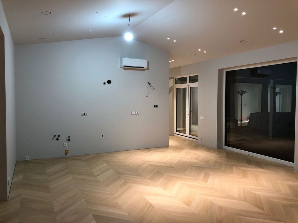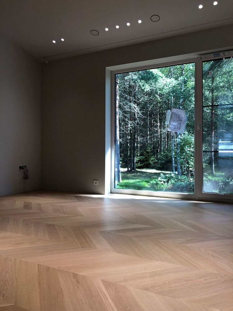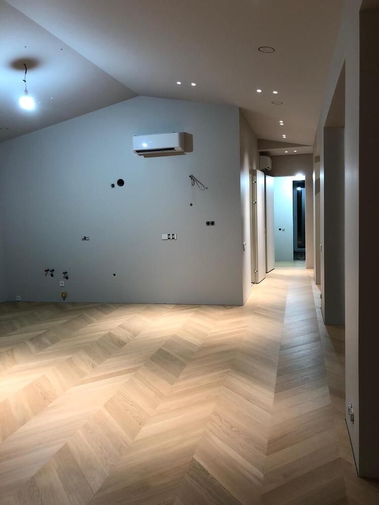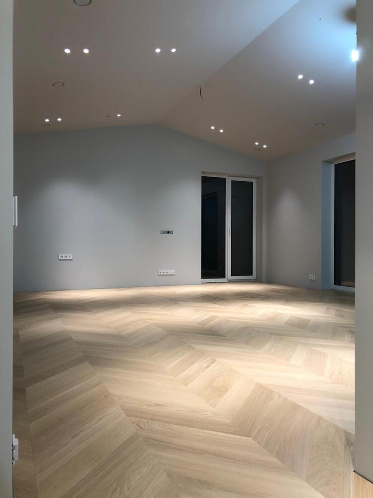 Мастера компании «Вернисаж» выполнили укладку паркетной доски на клей в частном дома Тверской области. В данном доме единственной системой отопления является плита с подогревом, поэтому выбор напольного покрытия пал на паркетную доску Weitzer Parkett толщиной 9,3 мм – одну из немногих, которая подходит для таких условий эксплуатации.