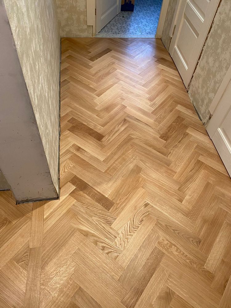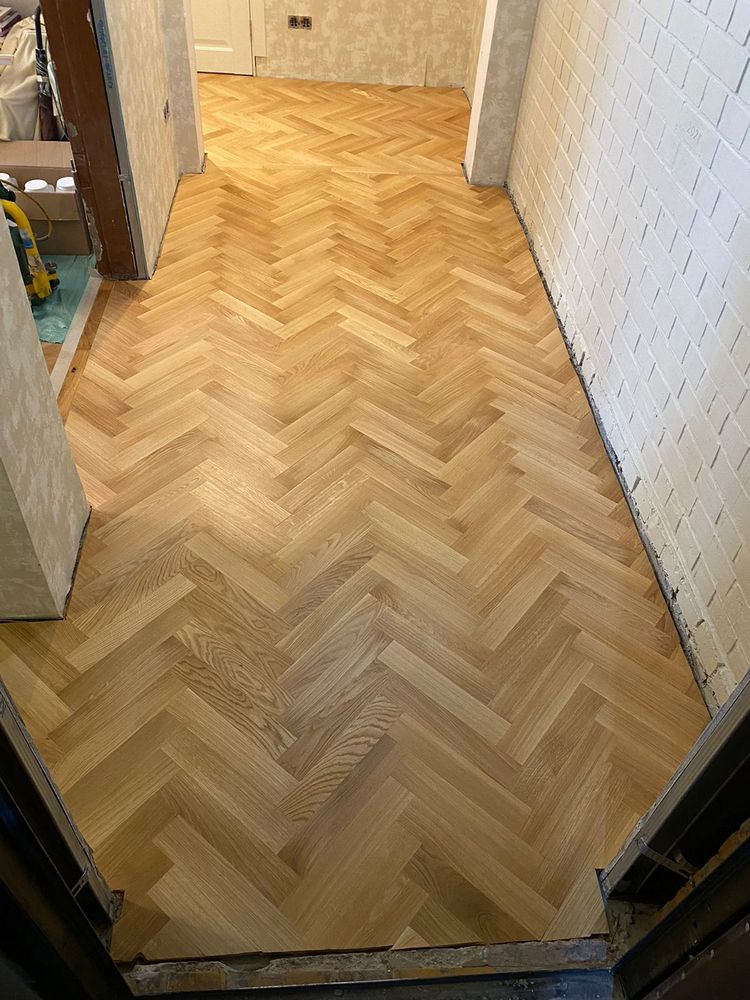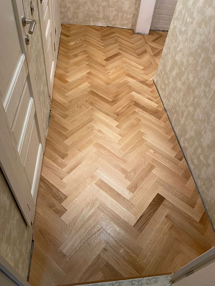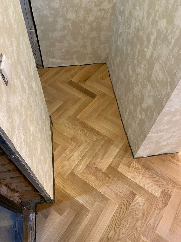 Мастера компании «Вернисаж» выполнили укладку штучного паркета на объекте на ул. Профсоюзная в Москве. На данном объекте стояла задача дополнить паркетную композицию в старом фонде: в комнатах был старый паркет, нужно было уложить паркет в коридоре.