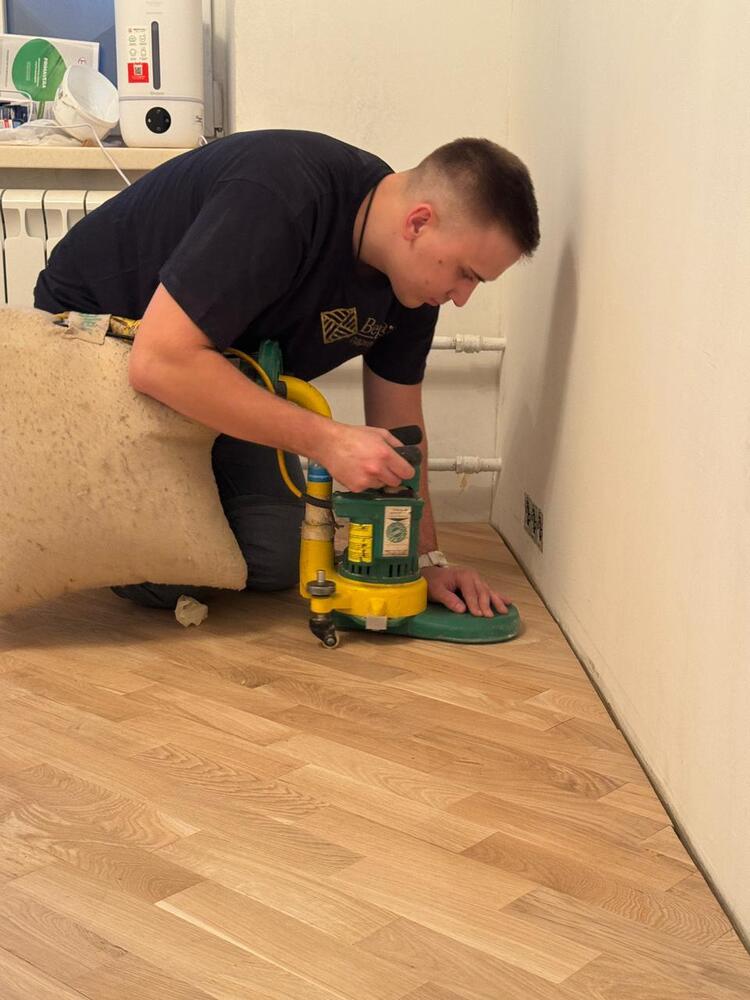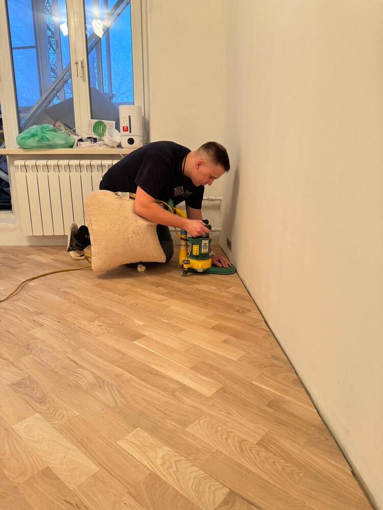 - покрытие паркета двухкомпонентным полиуретановым лаком Berger GreenStar в 3 слоя