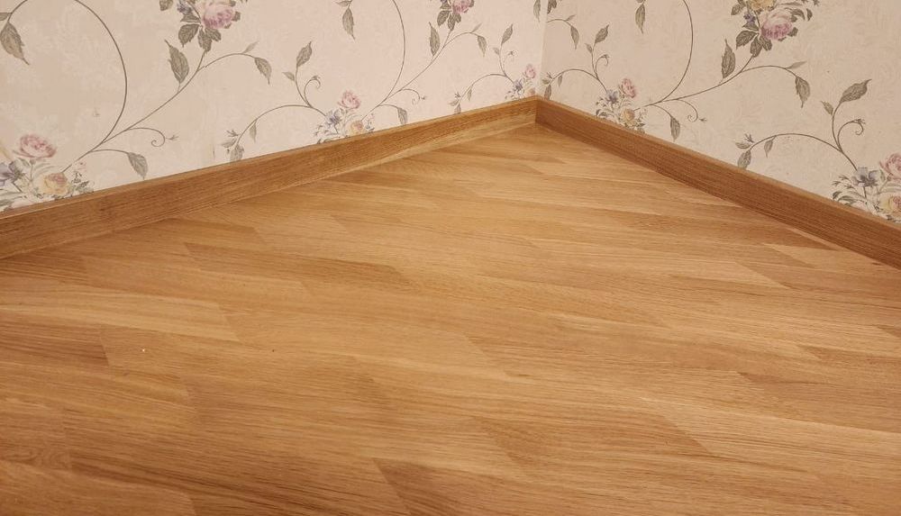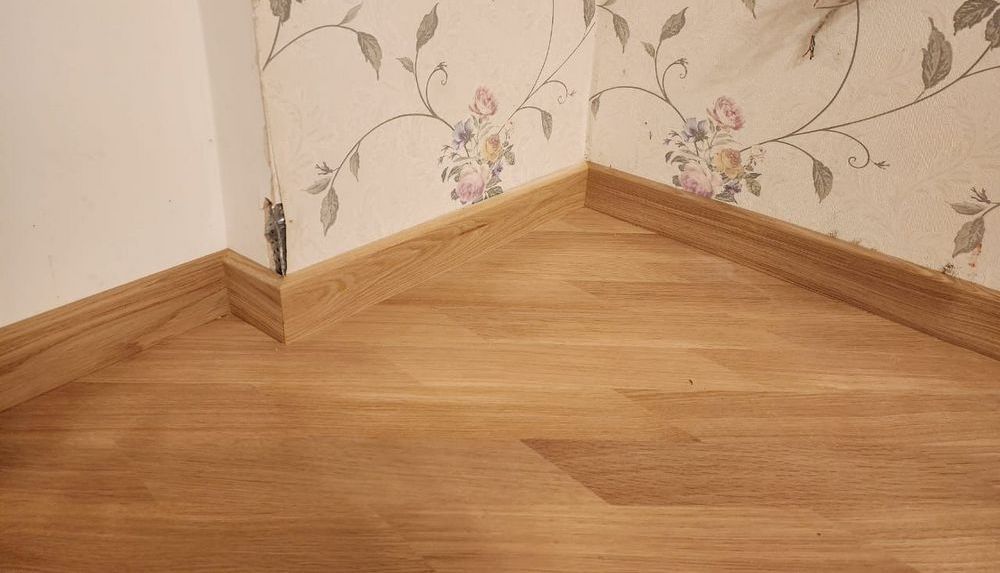 - установка прямого плинтуса 70 мм из массива дуба