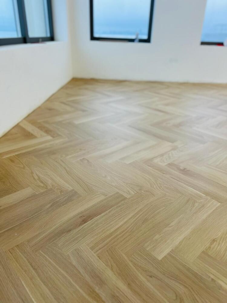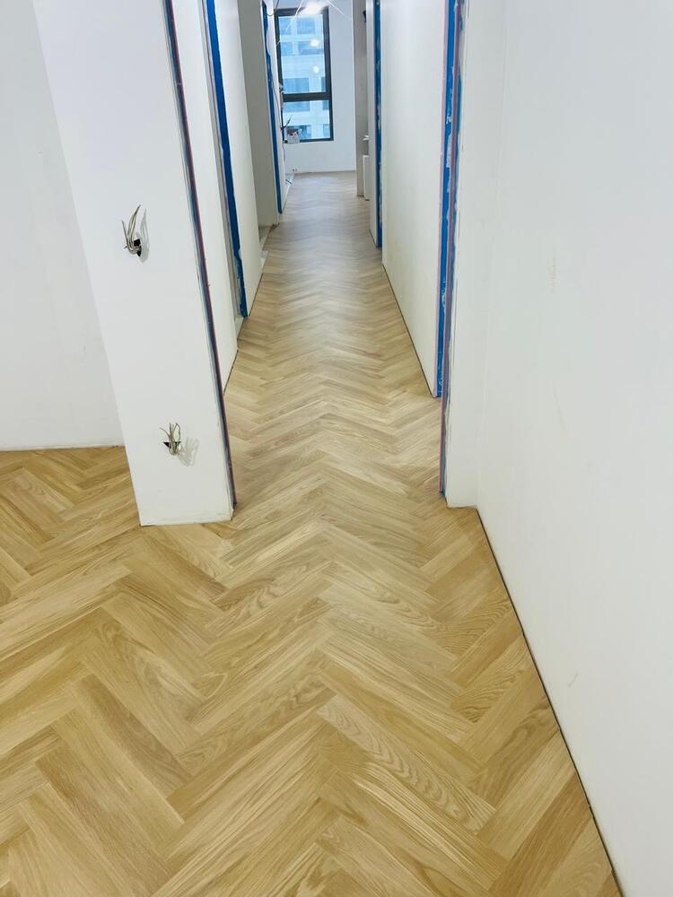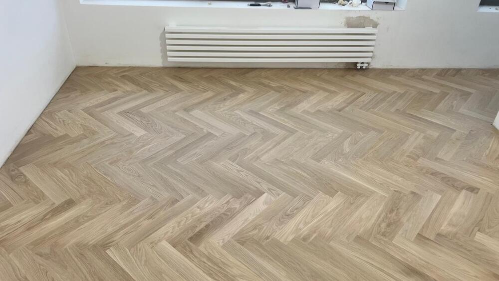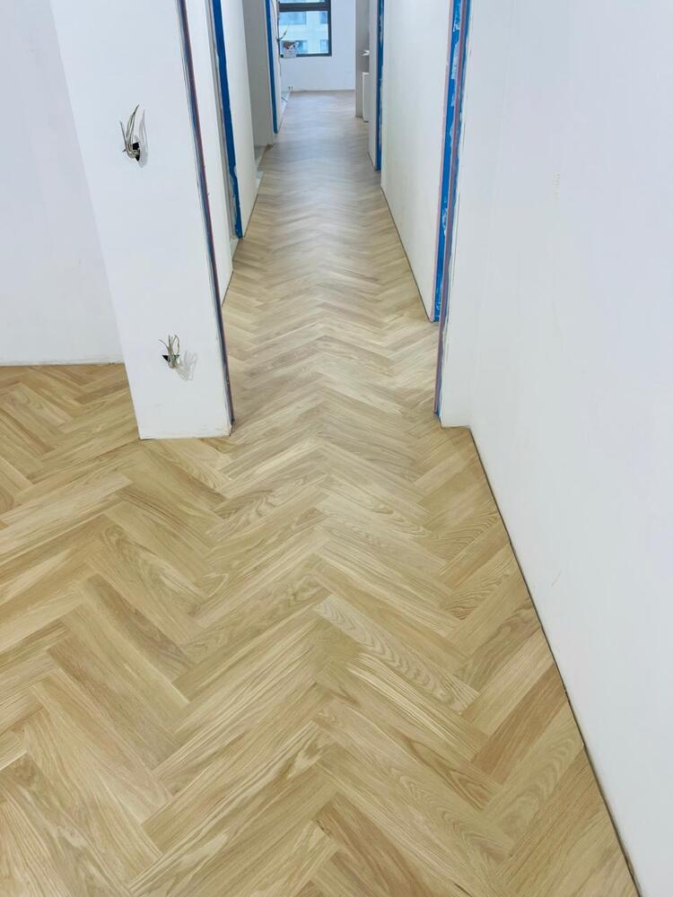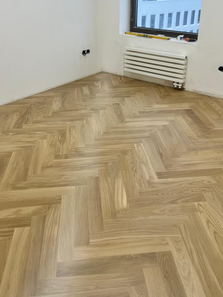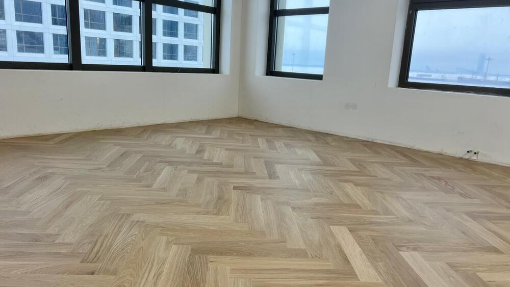 Мастера компании «Вернисаж» выполнили укладку штучного паркета на объекте на ул. Челюскина в Санкт-Петербурге. В квартире была уложен штучный паркет дуб селект 420х70.