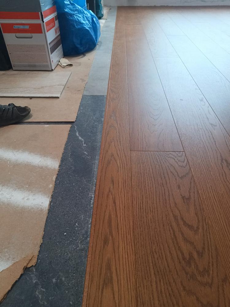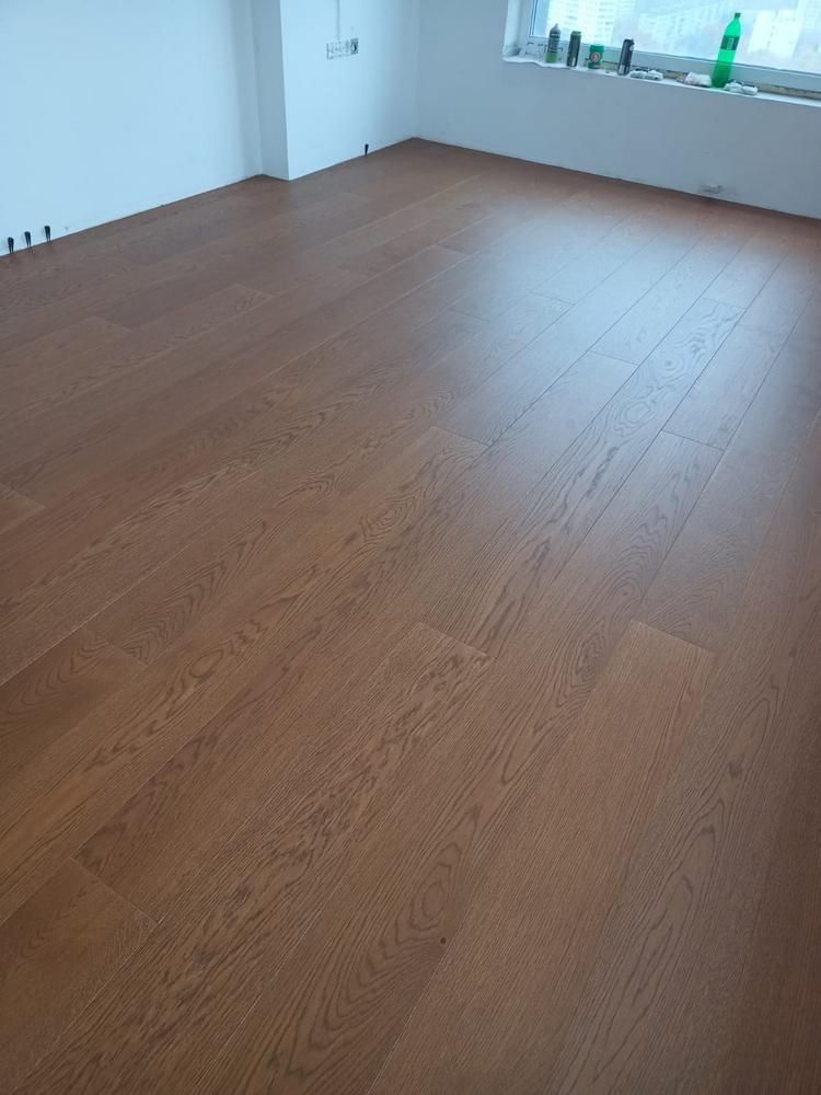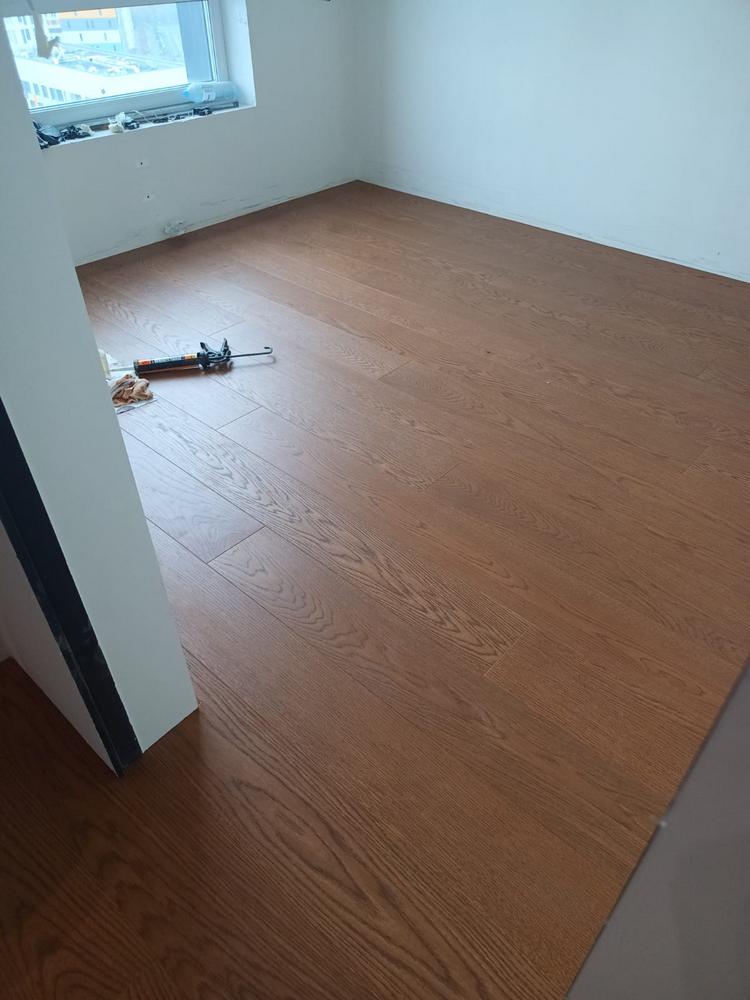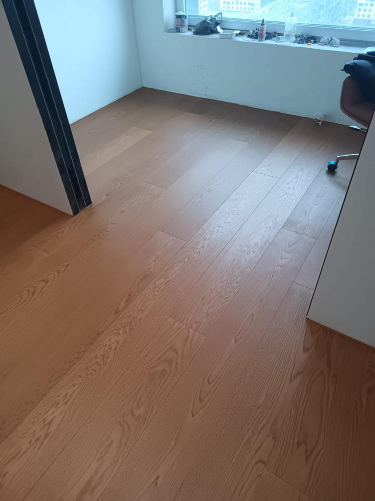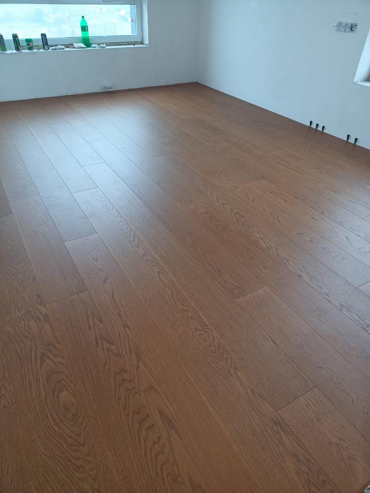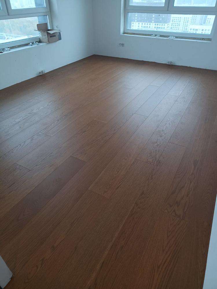 Мастера компании «Вернисаж» выполнили укладку паркетной доски бренда Weitzer Parkett в квартире в ЖК Green park на ул. Олонецкая в Москве. По периметру помещений установили крашеный пробковый компенсатор 150 пог.м, который идеально подошел по цвету.