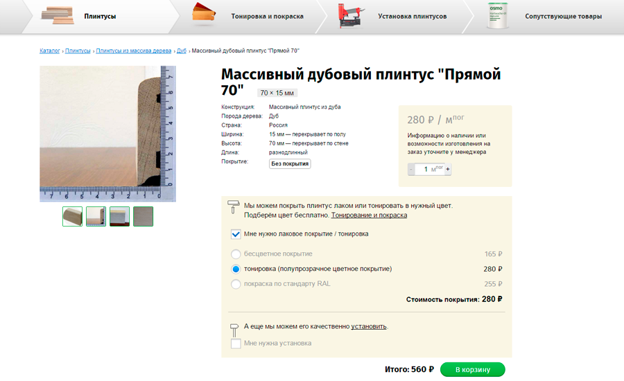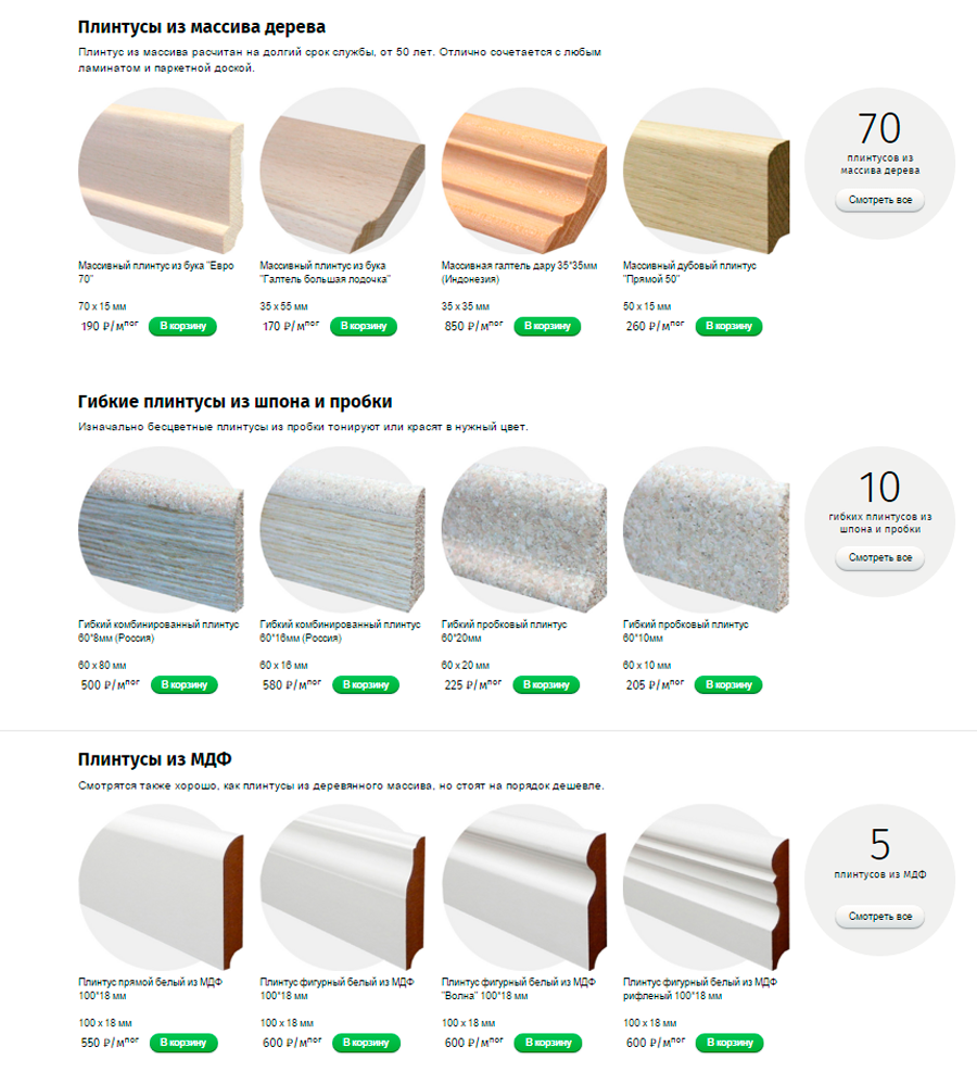 На сайте представлен удобный калькулятор плинтуса.