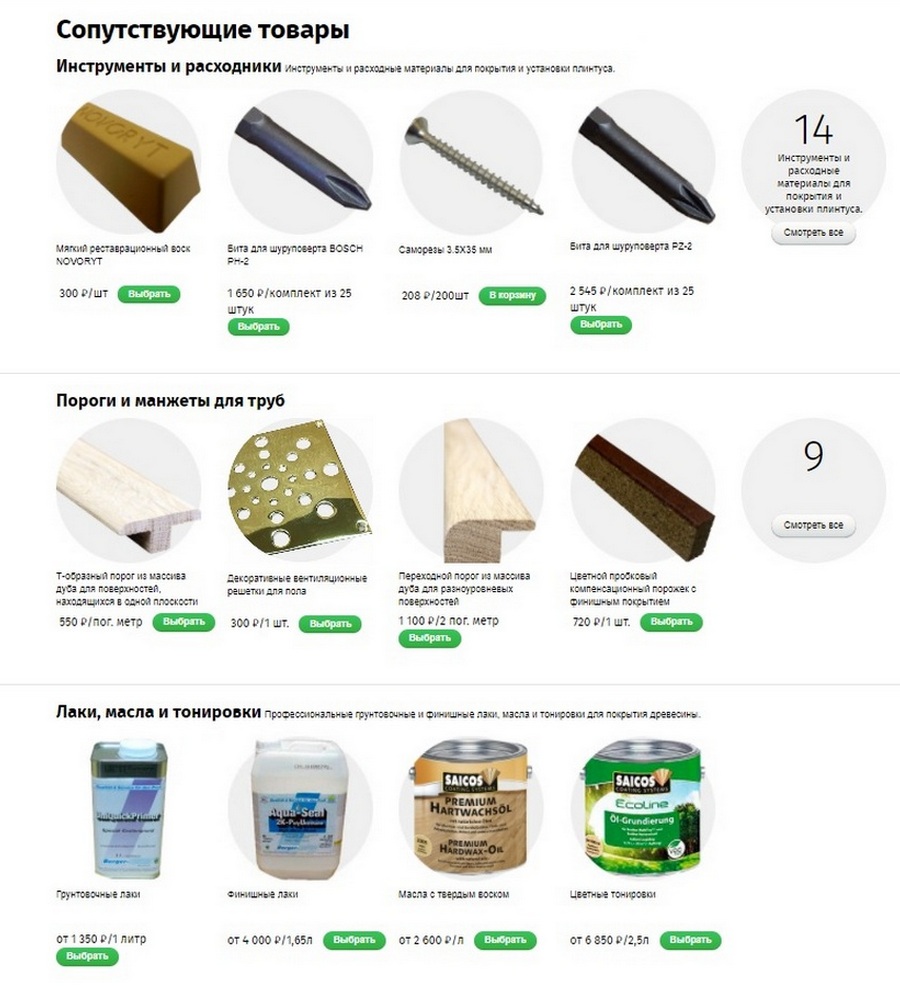 На сайте представлен огромный выбор видов форм и размеров плинтусов, а также все необходимые для установки и декорирования сопутствующие материалы.