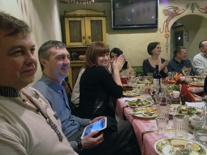 Паркетная компания «Вернисаж» по-прежнему верна себе и провела ежегодную корпоративную встречу Нового 2013 года по традиции 29 декабря. В этот раз нас хлебосольно встречал ресторан украинской кухни «Пузата Хата».