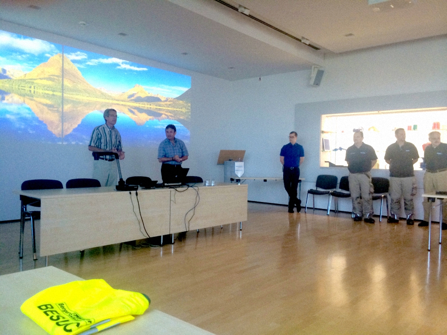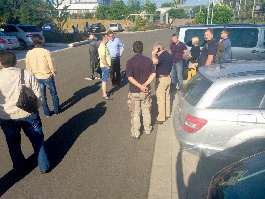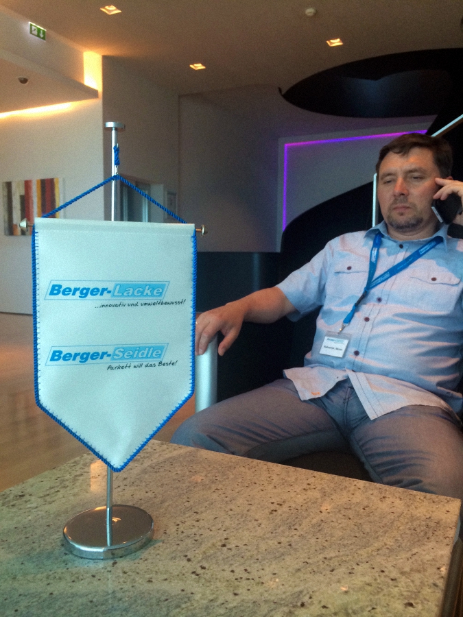 Компания паркетчиков-профессионалов во главе с руководителем Московского представительства компании «Вернисаж», представителем Berger-Seidle в России Максимом Рябошлыком отправилась летом 2014 г. на завод Berger-Seidle в Германии.