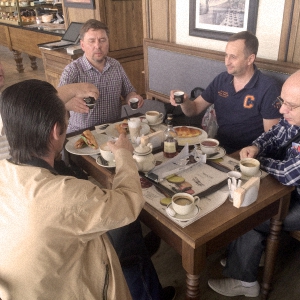 Совмещая приятное с полезным, а именно обучающую поездку на завод с отдыхом за границей, дружная и веселая компания из России начала совмещение со второй части, угостившись перед посадкой «кофе на дорожку».