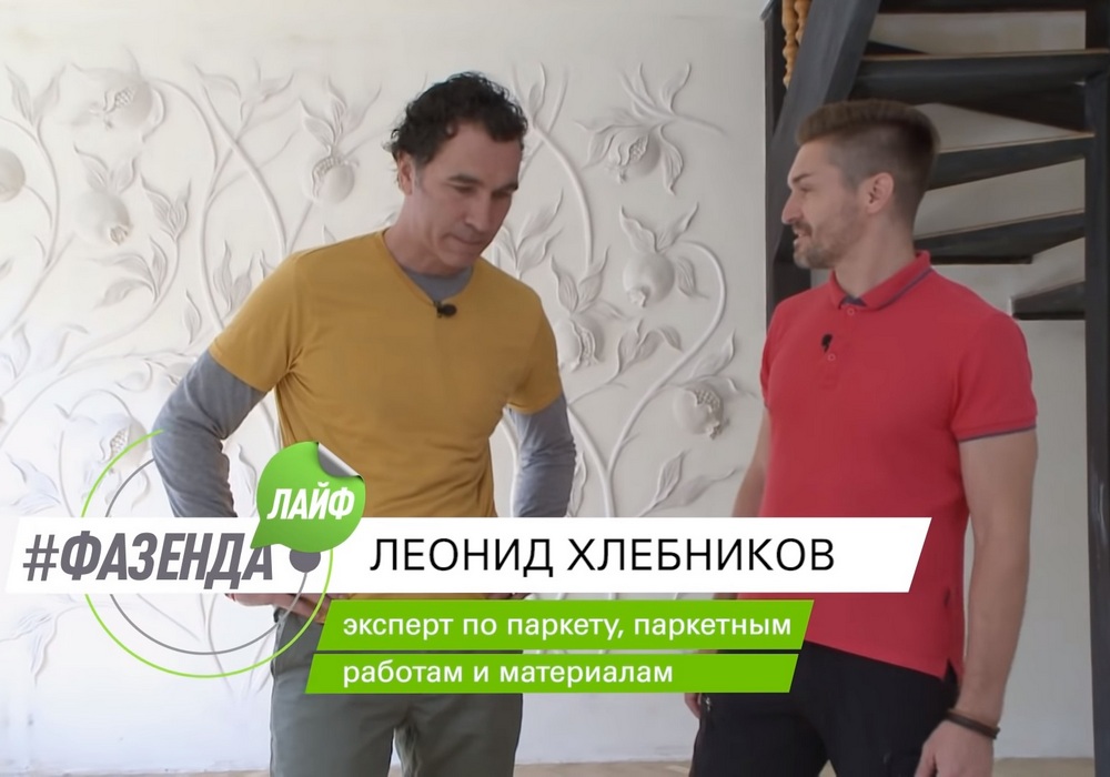 В воскресенье, 20 сентября, на телеканале «МИР24» вышел очередной выпуск передачи «Фазенда Лайф». На этот раз в передаче принял участие Леонид Хлебников с московской командой компании «Вернисаж», чтобы в доме героини выпуска выполнить реставрацию паркета. Дубовый паркет, уложенный рисунком «английская елка», прослужил хозяевам уже около 30 лет и отлично сохранился, поэтому было решено не менять его, а просто освежить – что мы с удовольствием и сделали.