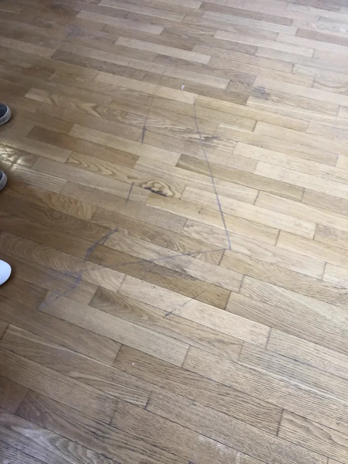 - Сначала мы выполнили шлифовку паркета, чтобы убрать верхний лаковый слой с мелкими царапинами и следами от разлитых медикаментов.