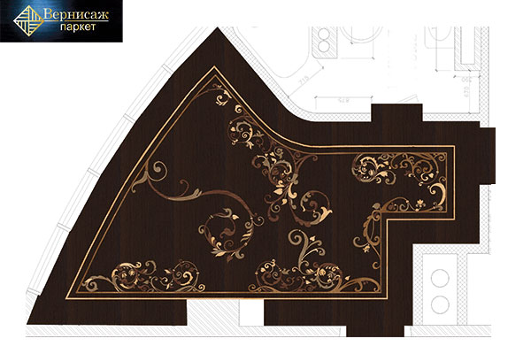1. Сначала клиент встречается с нашим отделом проектирования для создания дизайна-проекта будущего паркетного пола в профессиональных графических программах. Вы можете заказать укладку паркета с узорами растений или геометрическими фигурами, выбрать варианты из наших каталогов или разработать оригинальный рисунок. Дизайнеры отрисовывают художественную часть с учетом выбранного паркетного рисунка, цвета и текстуры дерева. При необходимости возможно моделирование проекта в 3D, чтобы клиент мог понять, как будут выглядеть полы в реальном помещении со стенами, окнами и т.п.