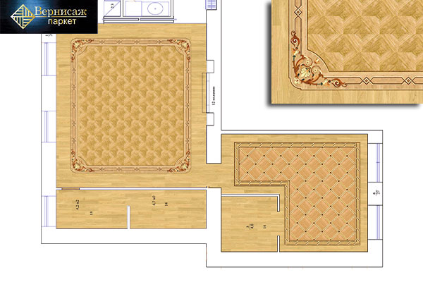 Вкратце опишем схему, по которой выполняется укладка художественного паркета при обращении в компанию «Вернисаж».