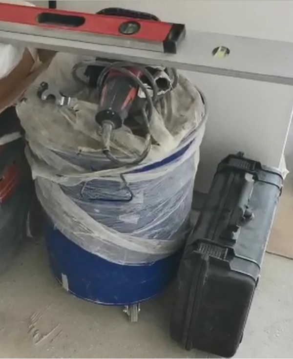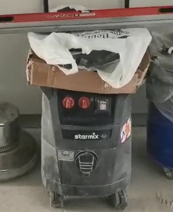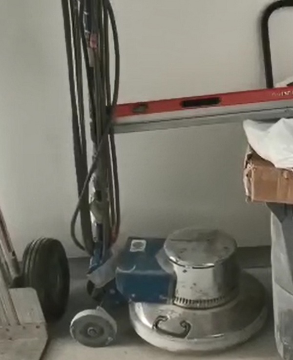 Ниже на фото представлено оборудование, которое применяется при шлифовке стяжки: шлифовальная машина Columbus, насадки, бочки, шланги, уровень, специальный пылесос. С таким комплектом обычно выходит бригада «Вернисаж» для выравнивания основания вашего пола.