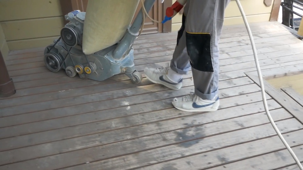 Также перед шлифовкой необходимо оценивать состояние доски: она бывает очень сильно выгнутая, иногда имеет недостаточную толщину, в террасных укладках могут присутствовать зазоры между досками. Часто из-за этих причин террасу приходится шлифовать не большими, а маленькими машинами.