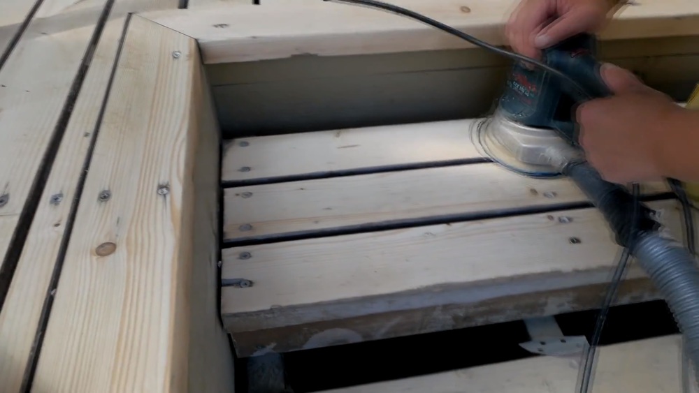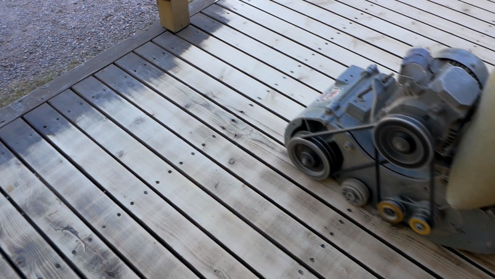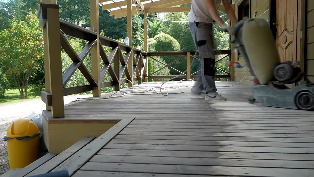 Шлифовка террасы выполняется по той же технологии, что и шлифовка паркета или других деревянных поверхностей. Для этих работ используются ленточные, угловые и дисковые машины.