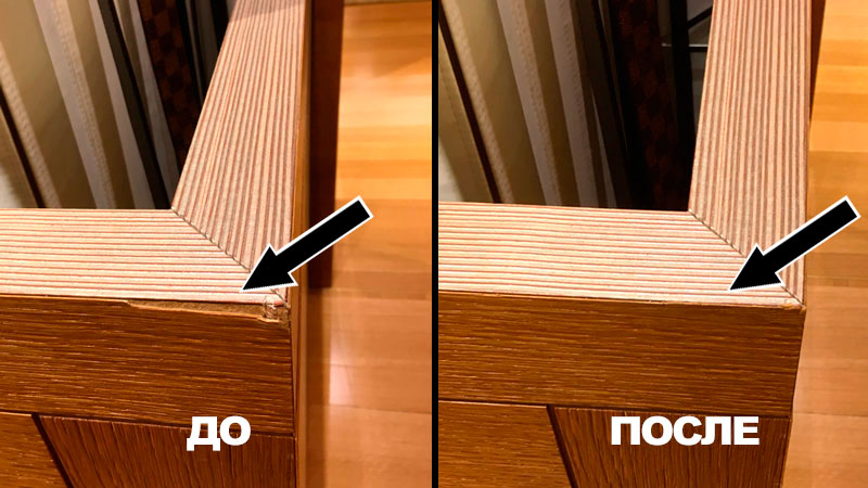 Частичная реставрация паркета или других деревянных поверхностей подходит в тех случаях, когда нужно восстанавливать не всю поверхность, а только поврежденный участок. Царапина от перетаскиваемого шкафа или кресла, прожог от уголька кальяна или сигареты, вмятина от упавшего утюга или гантели, отгрызенный домашним животным угол плинтуса или скол на мебели, потертости на поверхности пола и различного рода трещины на паркете, а также некоторые повреждения поверхности ламината – все это наши мастера смогут восстановить за один выезд. Все материалы для локальной реставрации паркета мастер привезет с собой. Это быстро и удобно, так как не требуется выносить мебель, укрывать готовые стены и ждать несколько дней, как при обычной шлифовке и лакировке паркета.